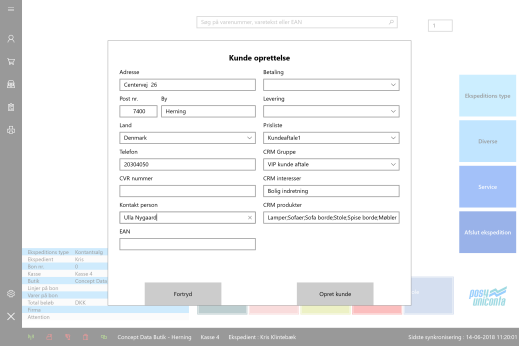 Pos4Uniconta benytter standard funktioner i Uniconta CRM.