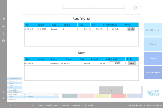 Kundes faktura eller ordre kan ses direkte i POS løsning.